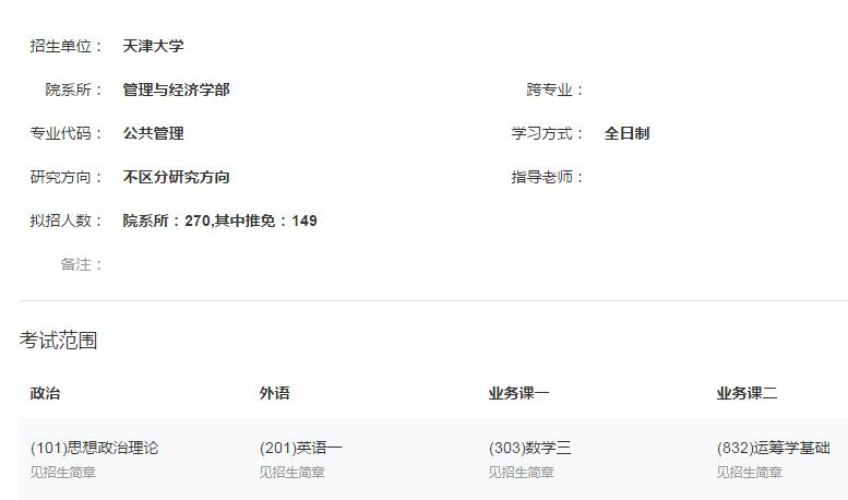 2018天津大学公共管理专业招生信息及考研大纲(含参考书目)