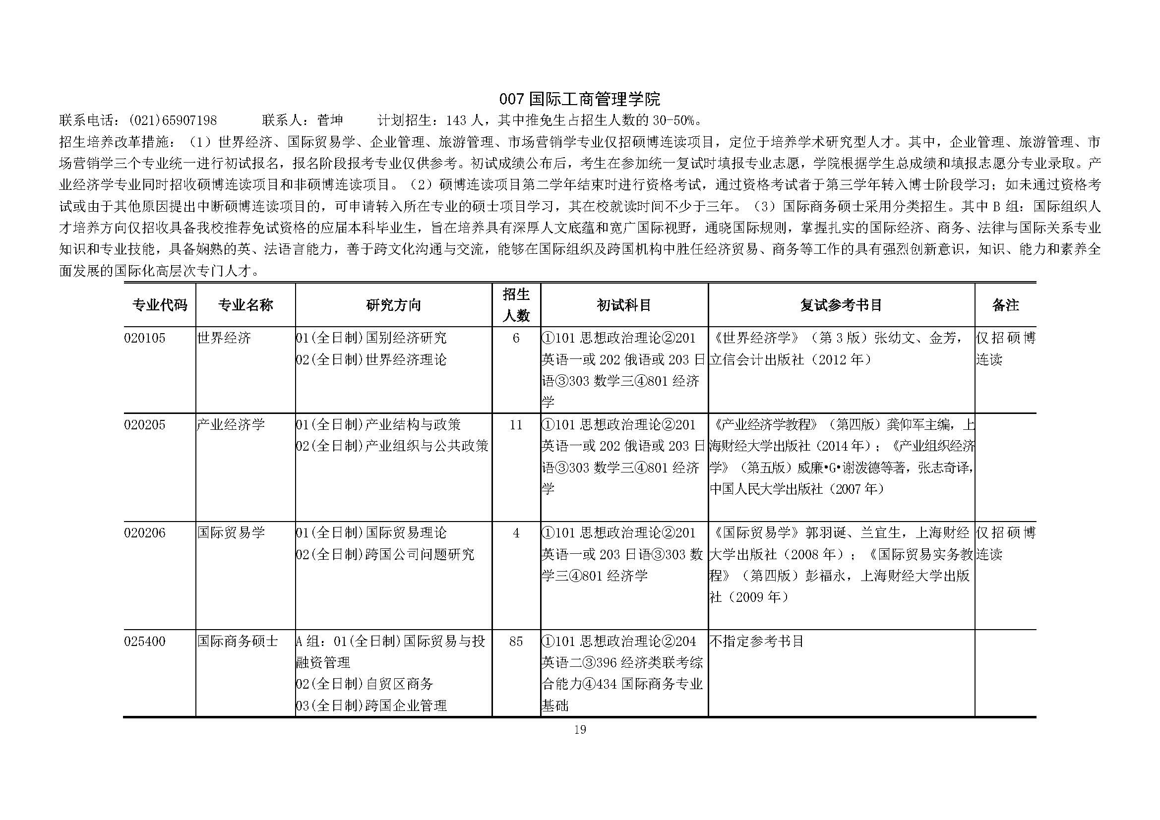 上海财经大学2018硕士研究生招生专业目录