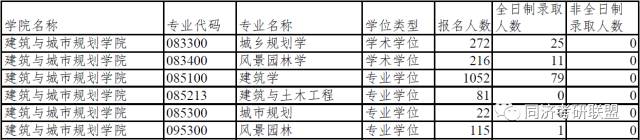 同济大学建筑与城市规划学院各专业2017年报录比