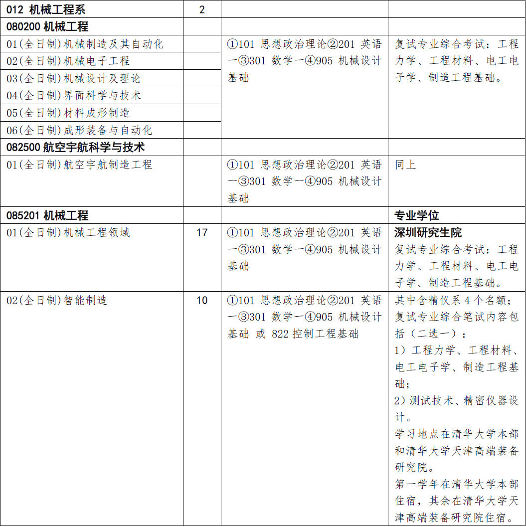 清华大学机械工程系2018年硕士研究生招生人数