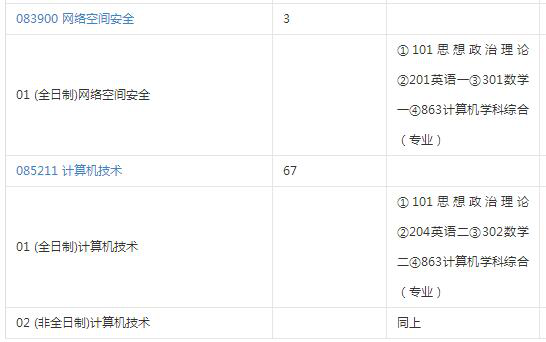 ①101思想政治理论②204英语二③302数学二④863计算机学科综合(专业)