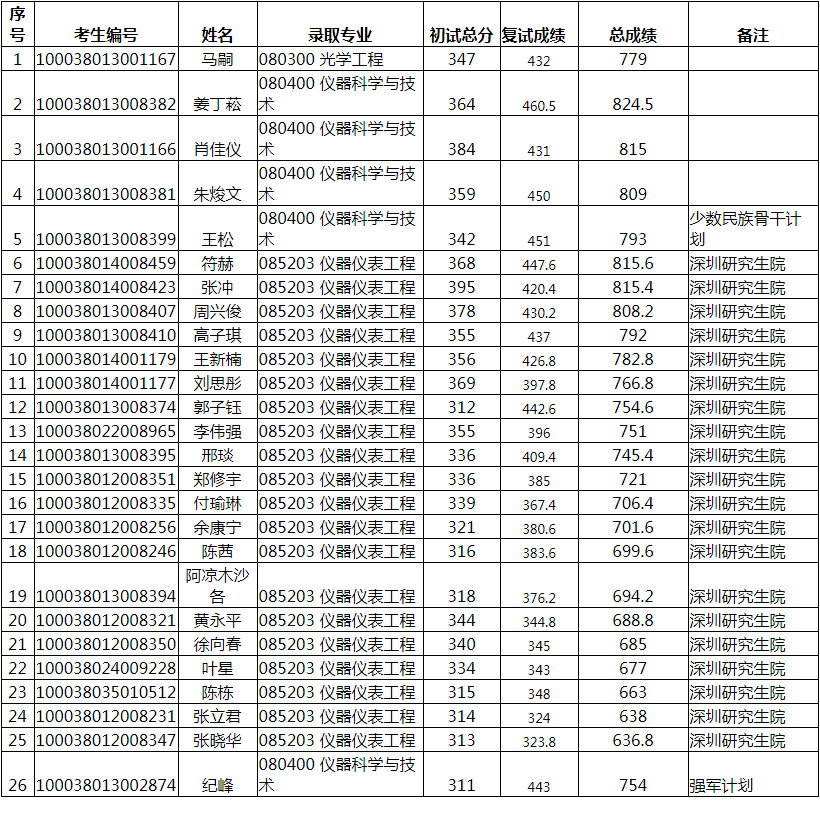 清华大学精密仪器系2018年硕士研究生拟录取名单