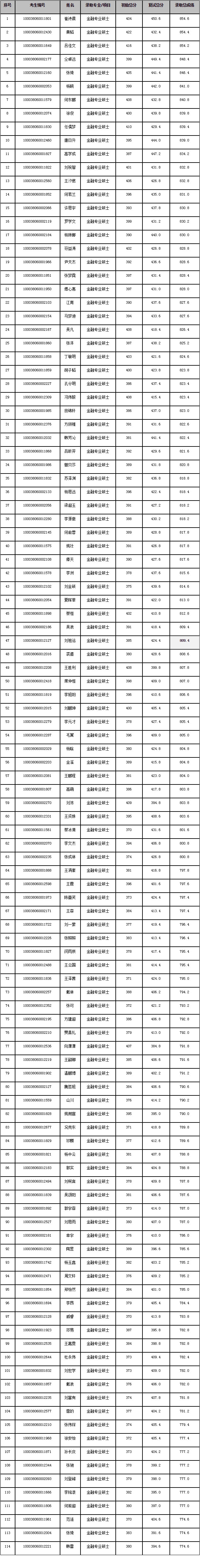 清华大学五道口金融学院2018年硕士研究生拟录取名单