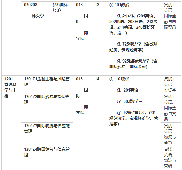备注:这是2018年招生简章的两个专业截图,有招考人数,各是12和14。管科虽然初试不考国贸国金,但复试还是要碰的。考生的主要关注点还是考不考高数。