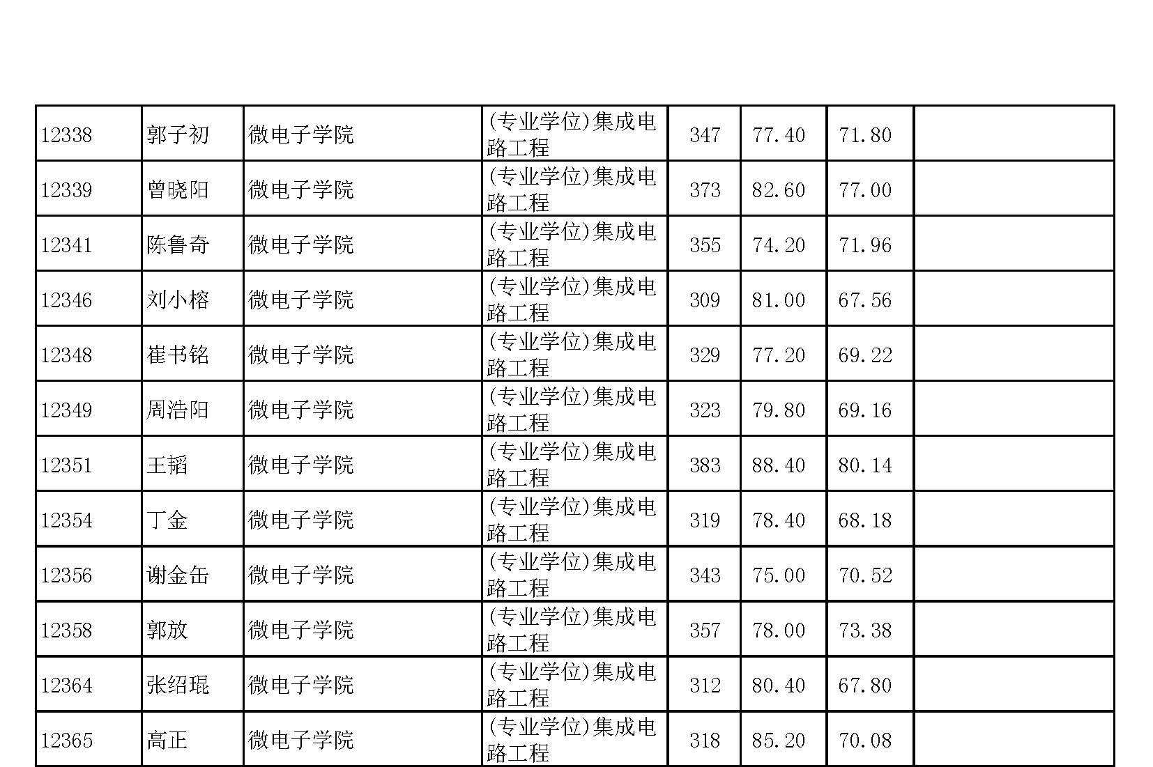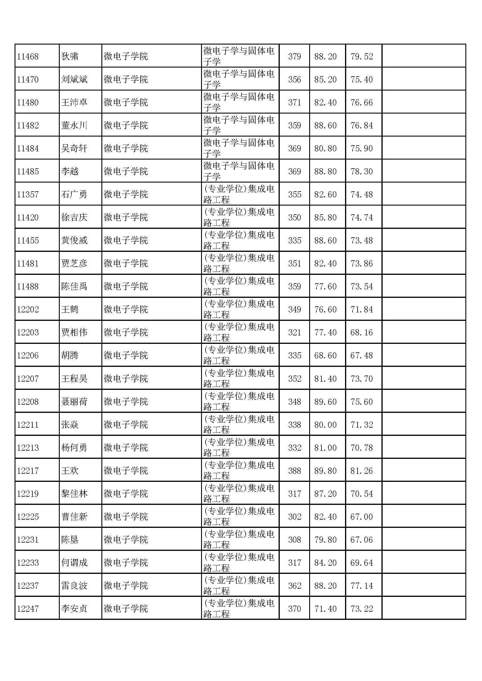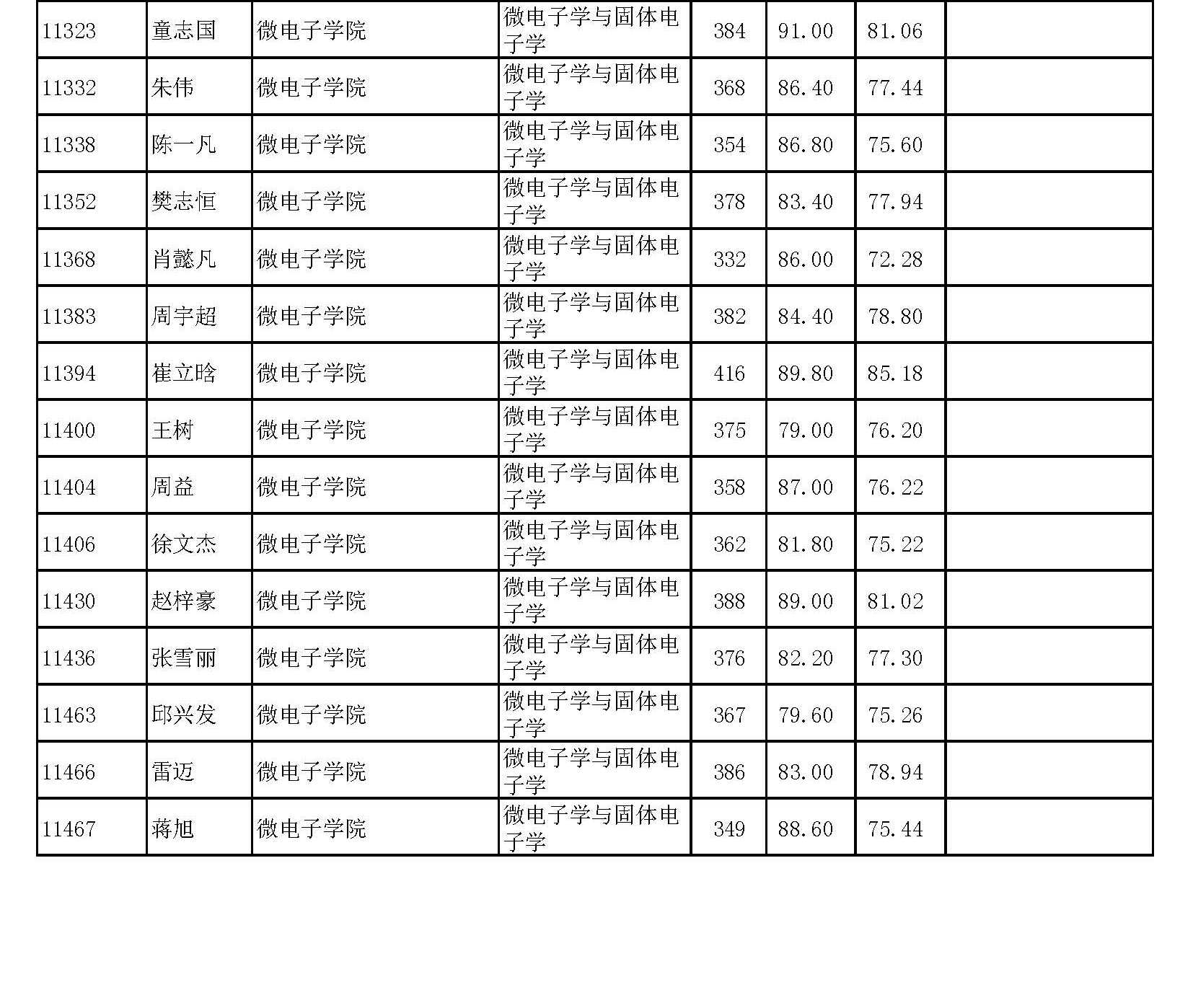 复旦大学微电子学院2018年硕士研究生拟录取名单