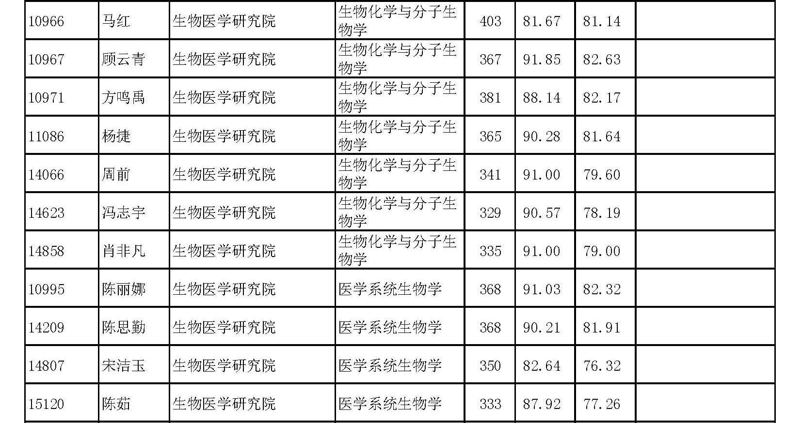 复旦大学生物医学研究所2018年硕士研究生拟录取名单