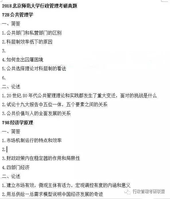 真题分享| 2018北京师范大学行政管理考研真题回忆版