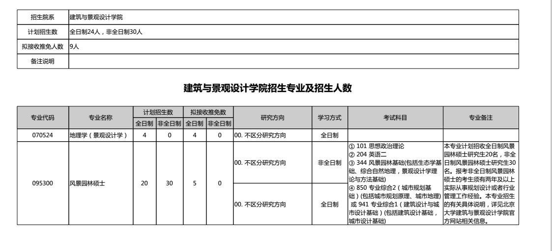 北京大学2019年建筑与景观设计学院研究生考研专业目录