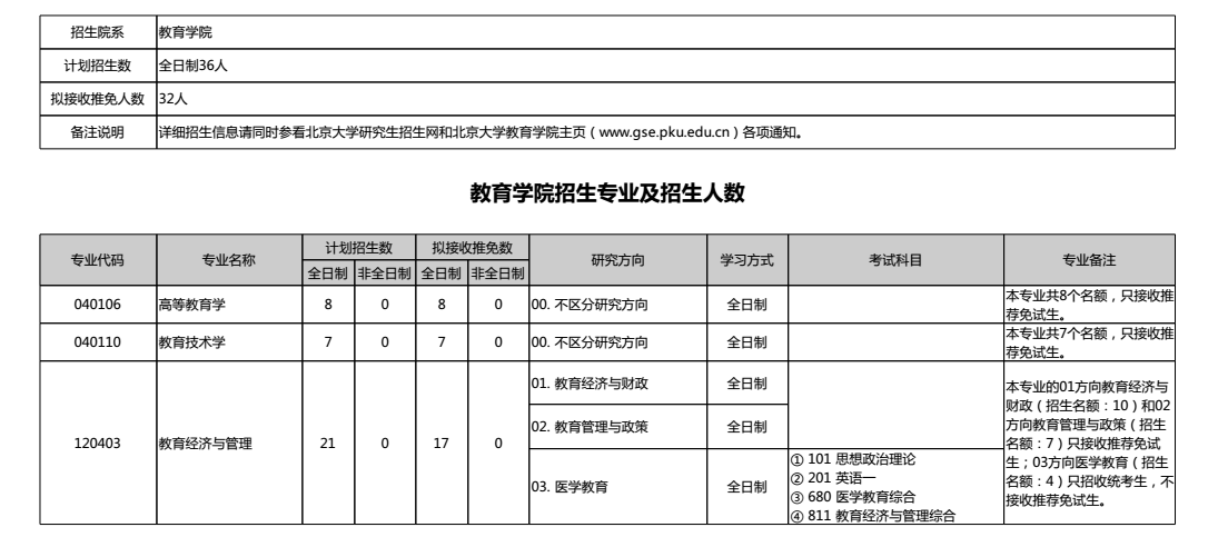 北京大学2019年教育学院研究生考研专业目录
