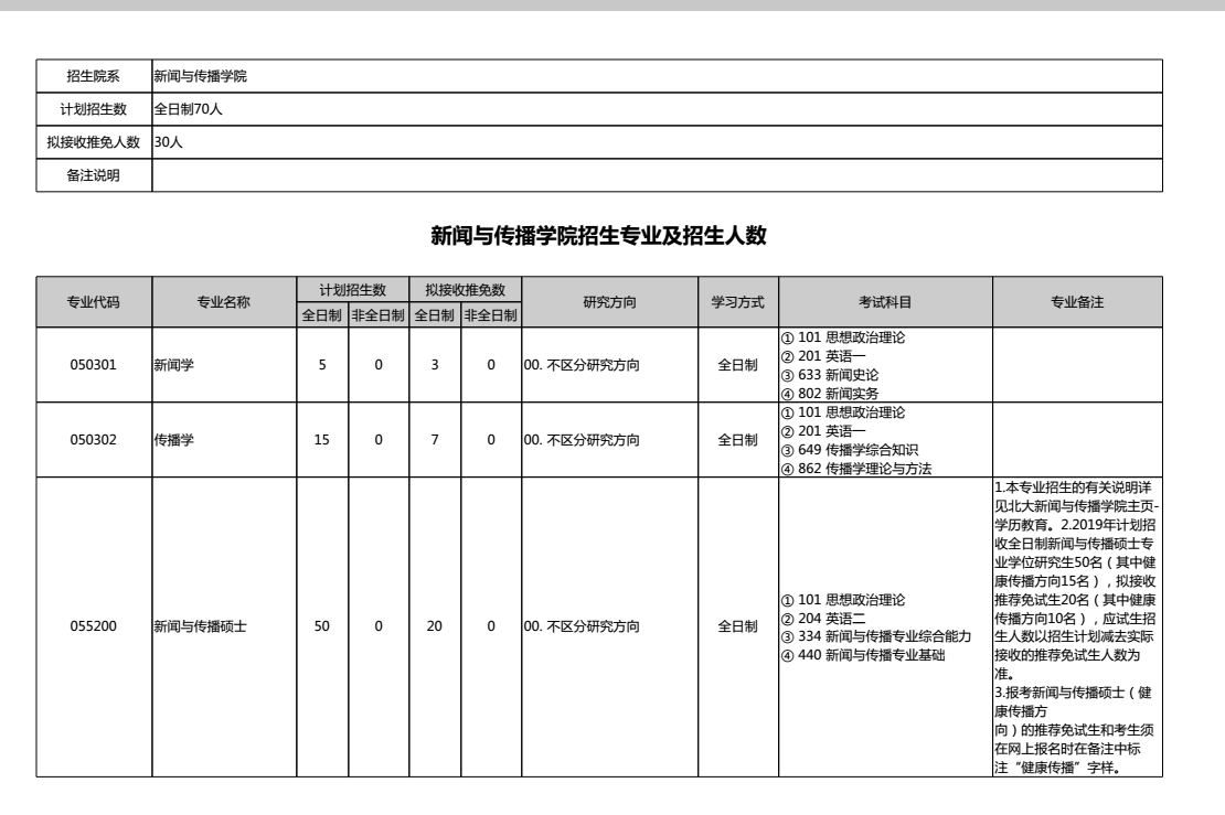 北京大学2019年新闻与传播学院研究生考研专业目录