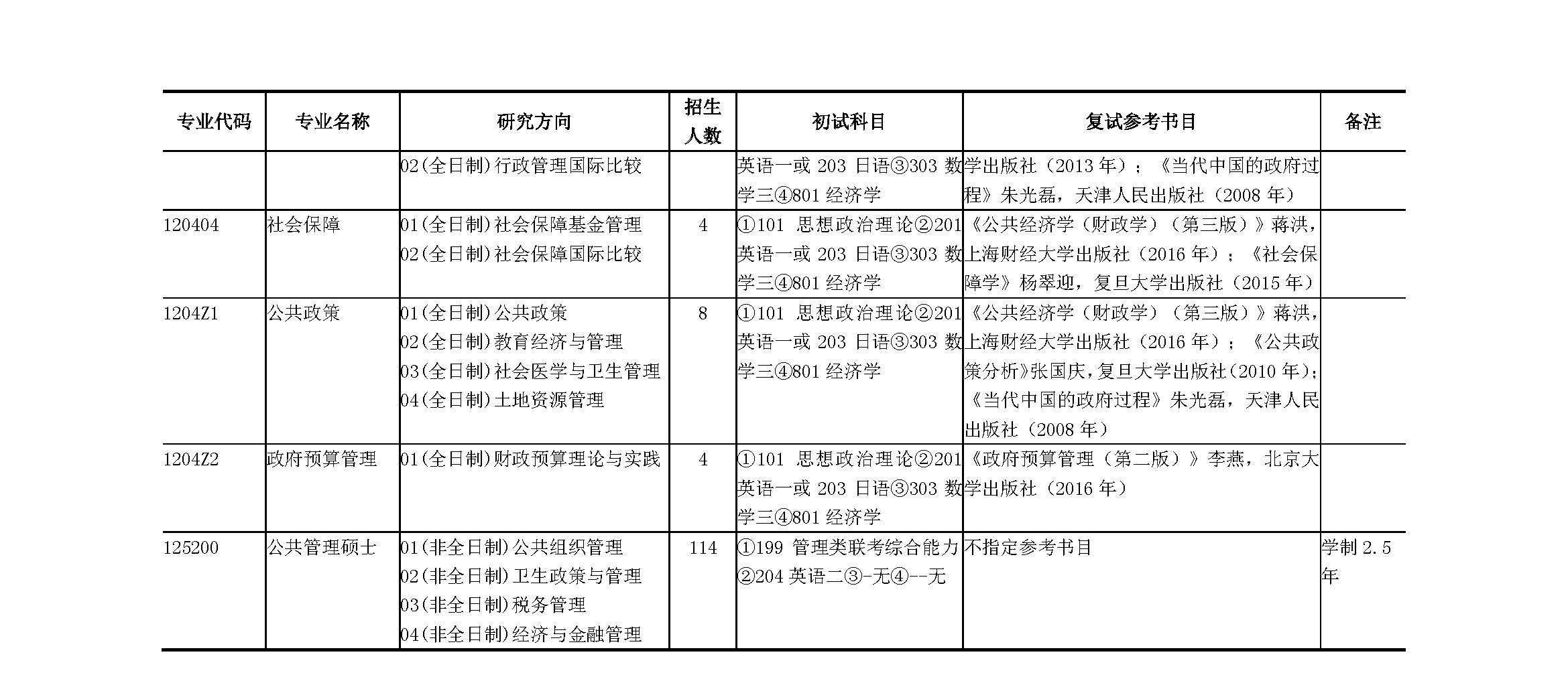 上海财经大学2019年公共经济与管理学院硕士研究生招生专业目录、招生人数