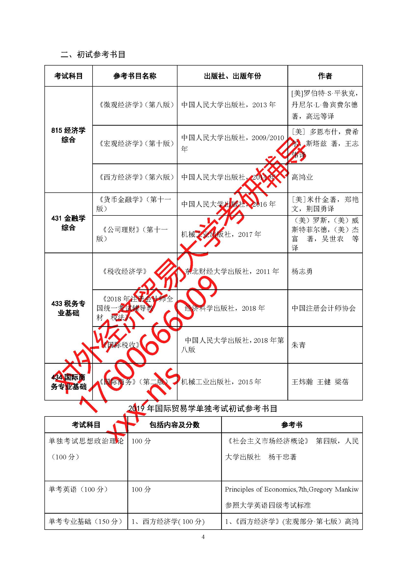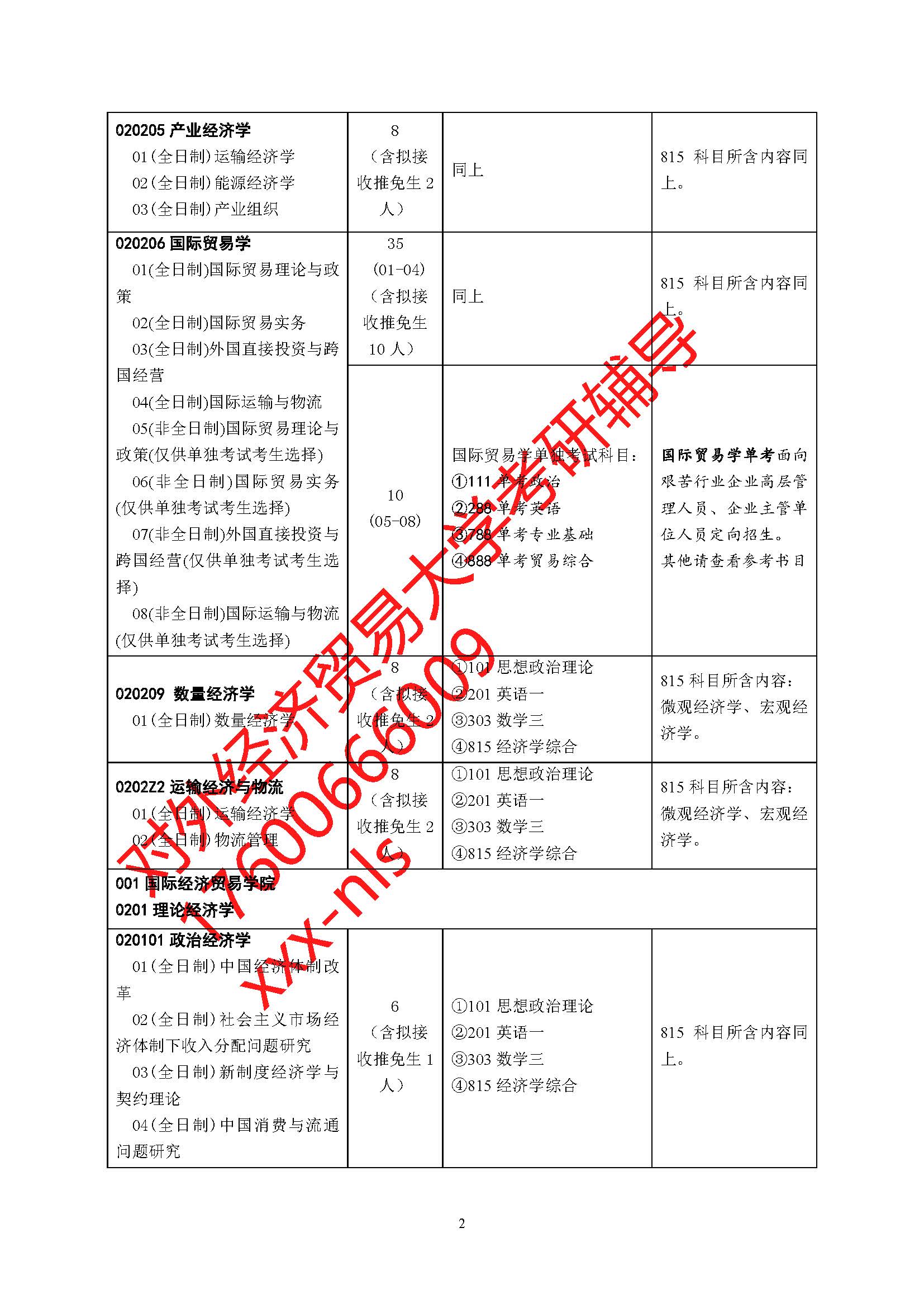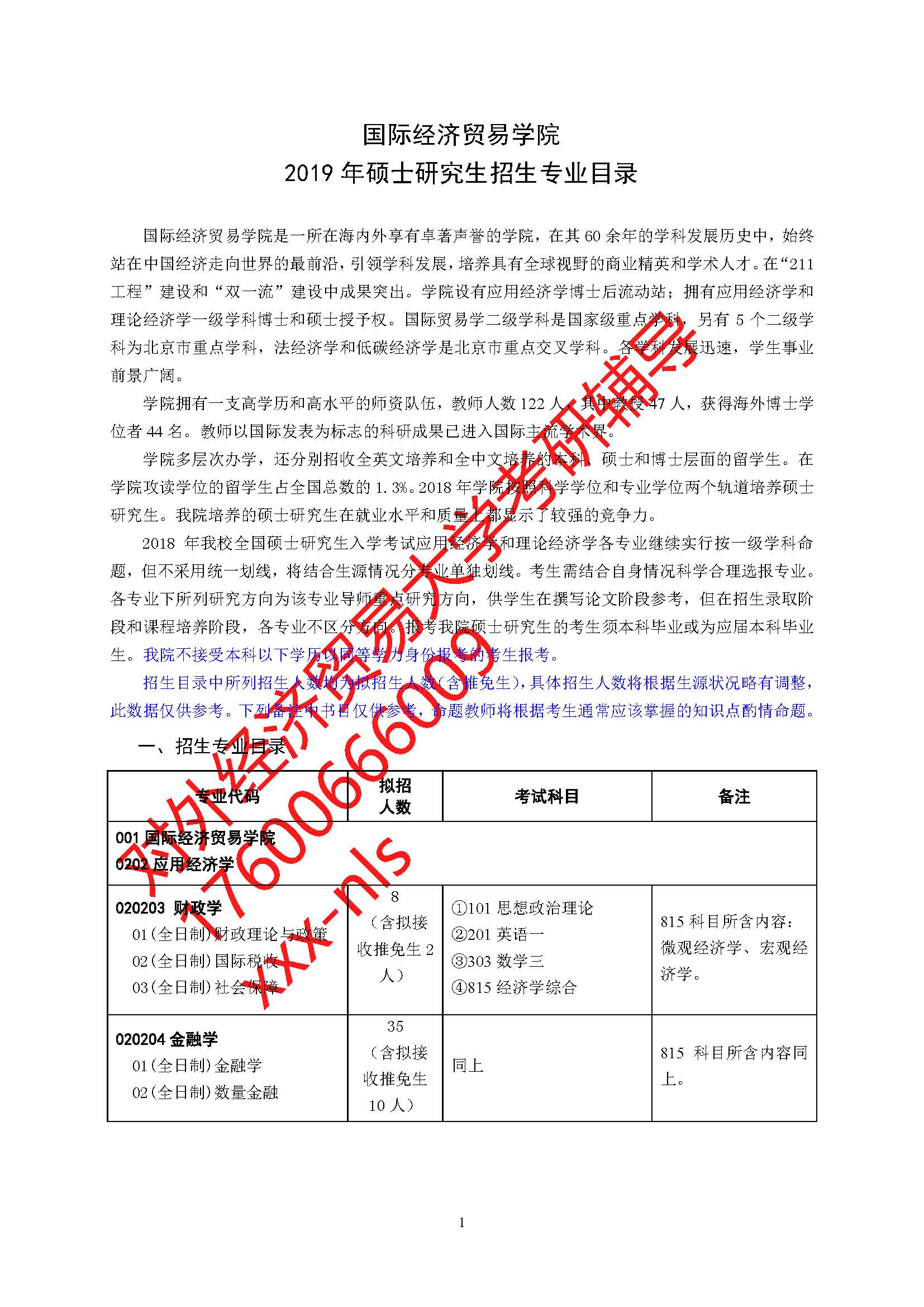 对外经济贸易大学国际经济贸易学院2019年硕士研究生招生专业目录