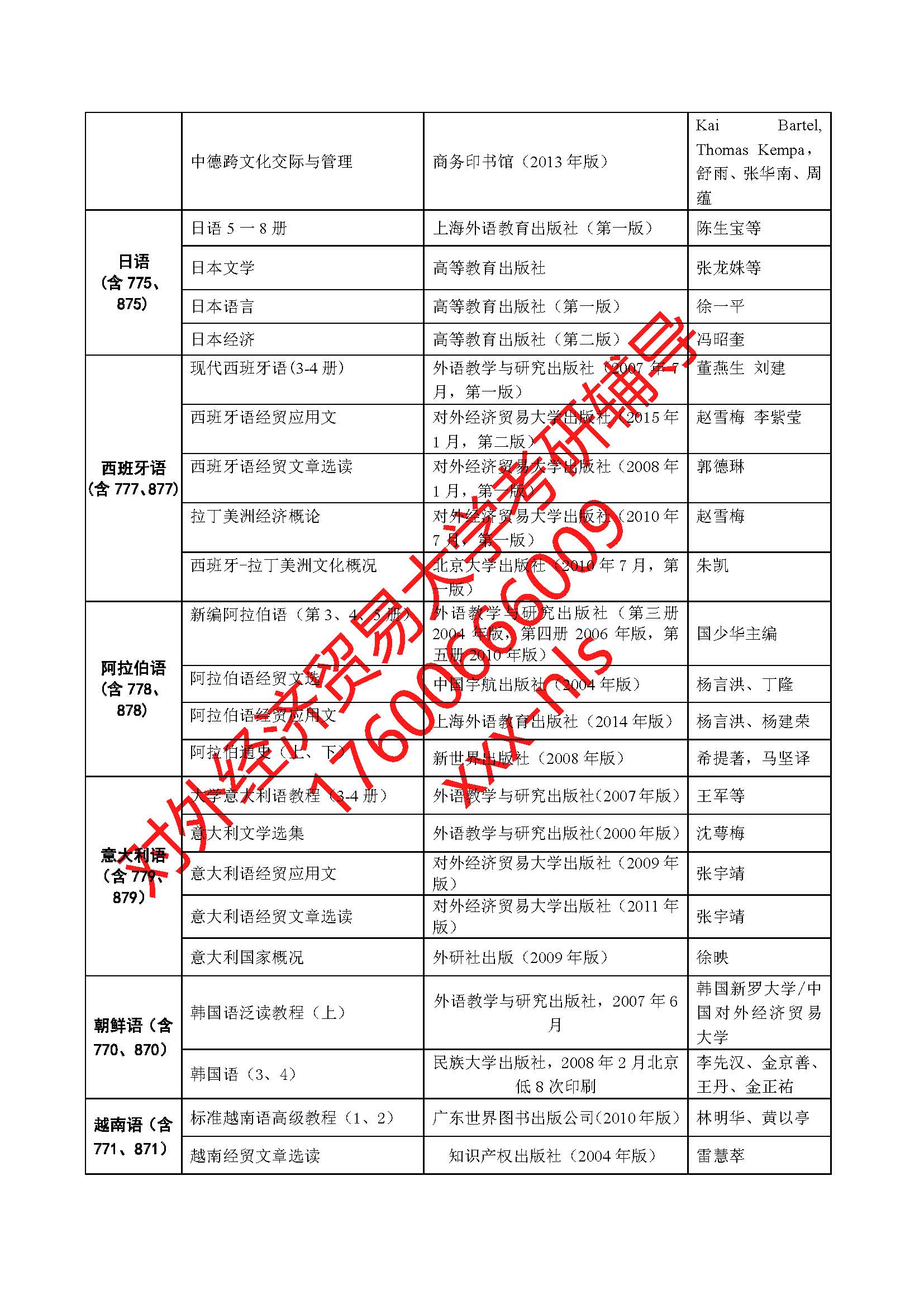 对外经济贸易大学外语学院2019年硕士研究生招生专业目录