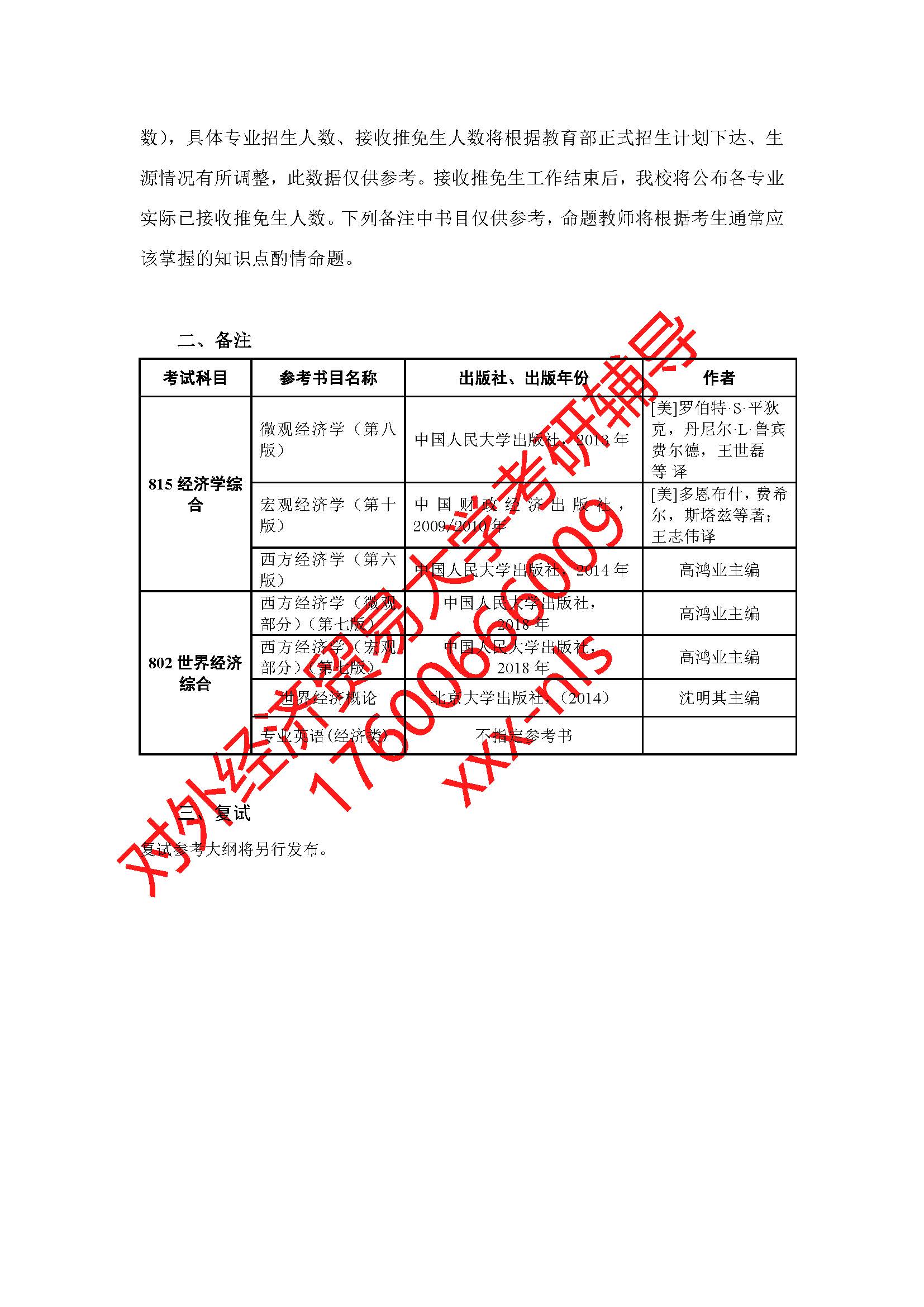 对外经济贸易大学中国世界贸易组织研究院2019年硕士研究生招生专业目录