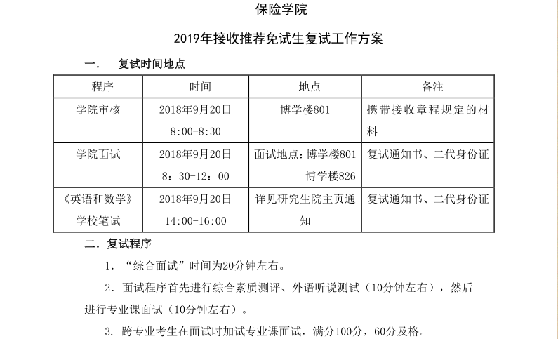 对外经济贸易大学保险学院2019年接收推荐免试生复试工作方案