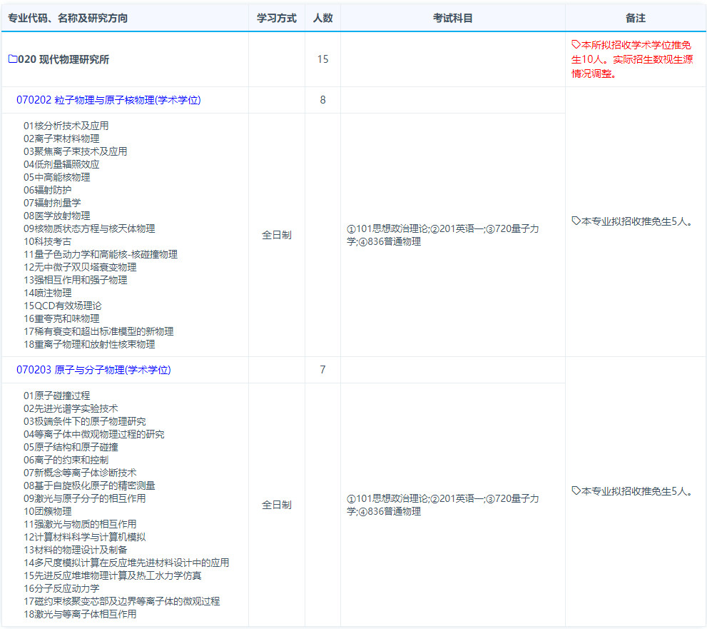 2019年复旦大学现代物理研究所考研招生专业、招生人数、考试科目