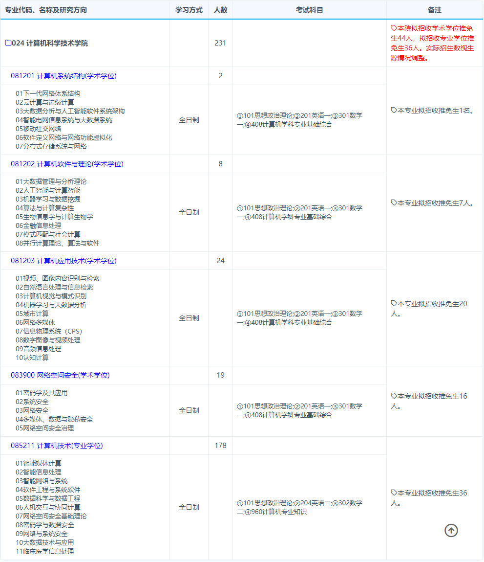 2019年复旦大学计算机科学技术学院考研招生专业、招生人数、考试科目