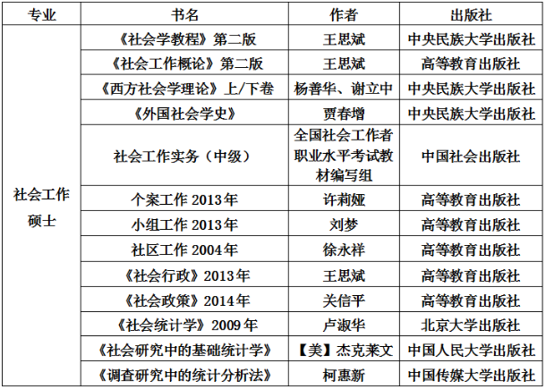 参考书主要是社工最基本的几本书,像社工导论、个案、小组、社区、研究方法、社会学概论、行政、政策这几本。前面几本是重点。还有就是要看真题和笔记,我当时是从几个学姐学长那里买来的笔记。