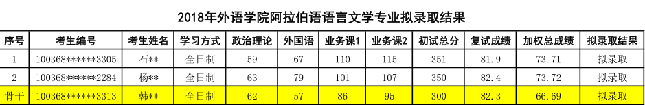 五、对外经济贸易大学阿拉伯语语言文学专业研究生拟录取情况(2018年名单):