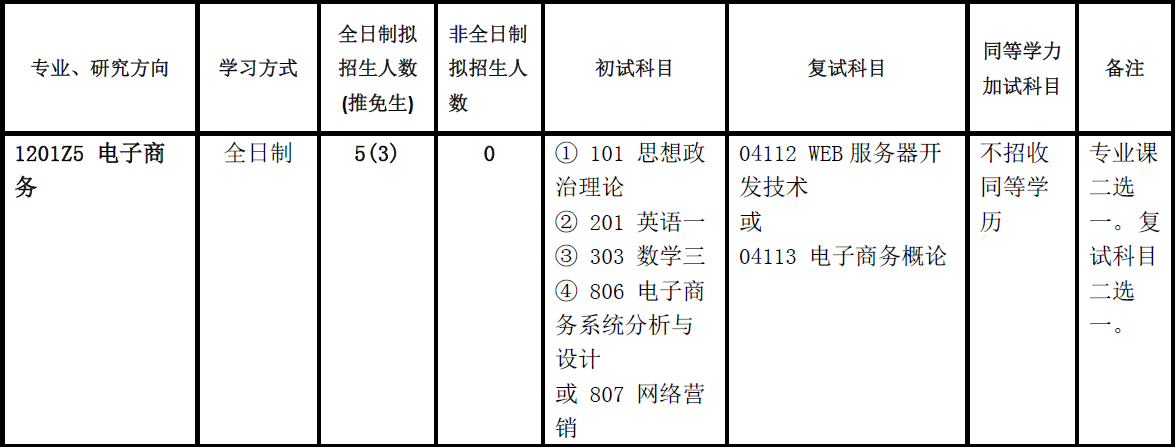 本学科专业设在“管理科学与工程”一级学科。主要为电子商务领域培养高层次的系统分析、设计、管理与决策人才。授予管理学硕士学位。