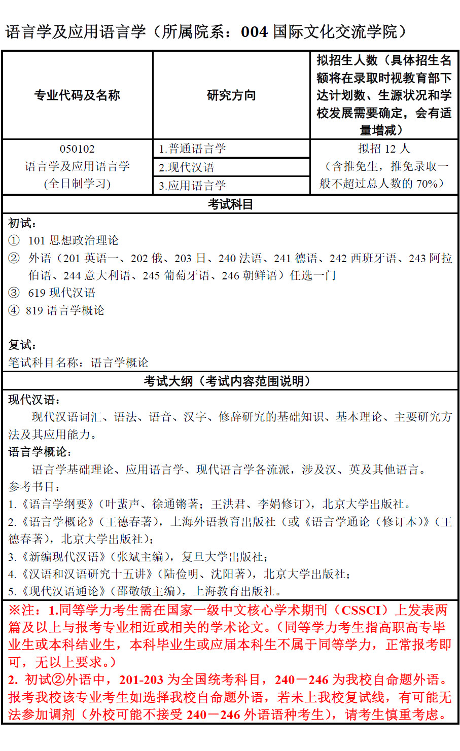 2020年上海外国语大学语言学及应用语言学考研招生情况介绍