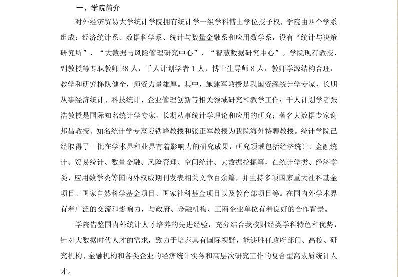 第一部分:关于对外经济贸易大学统计学院的简介、统计学专业的特点: