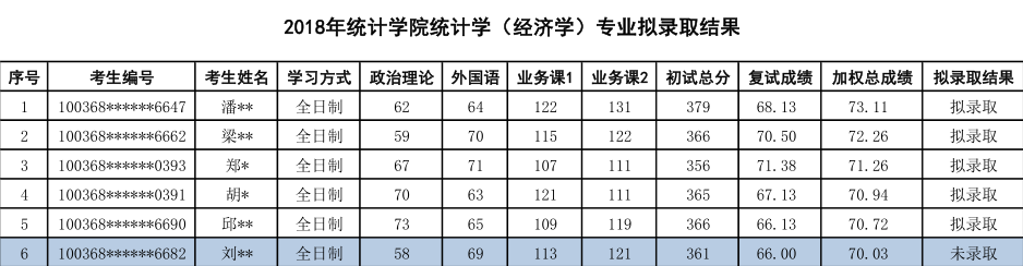 五、对外经济贸易大学816统计学专业研究生拟录取情况(2018年名单):