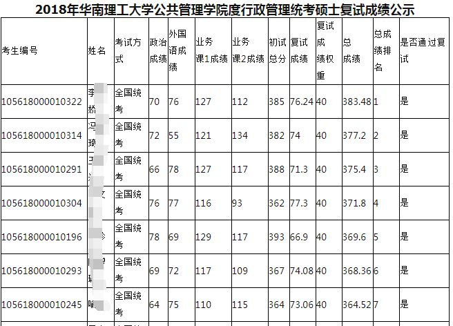 四、2018年华南理工大学大学行政管理考研拟录取名单