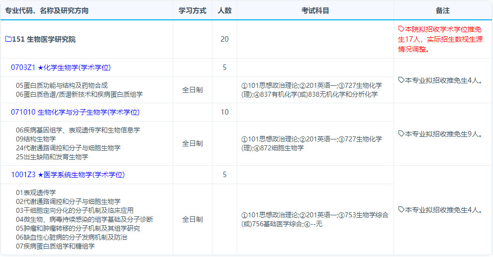 2019年复旦大学生物医学研究院考研招生专业、招生人数、考试科目