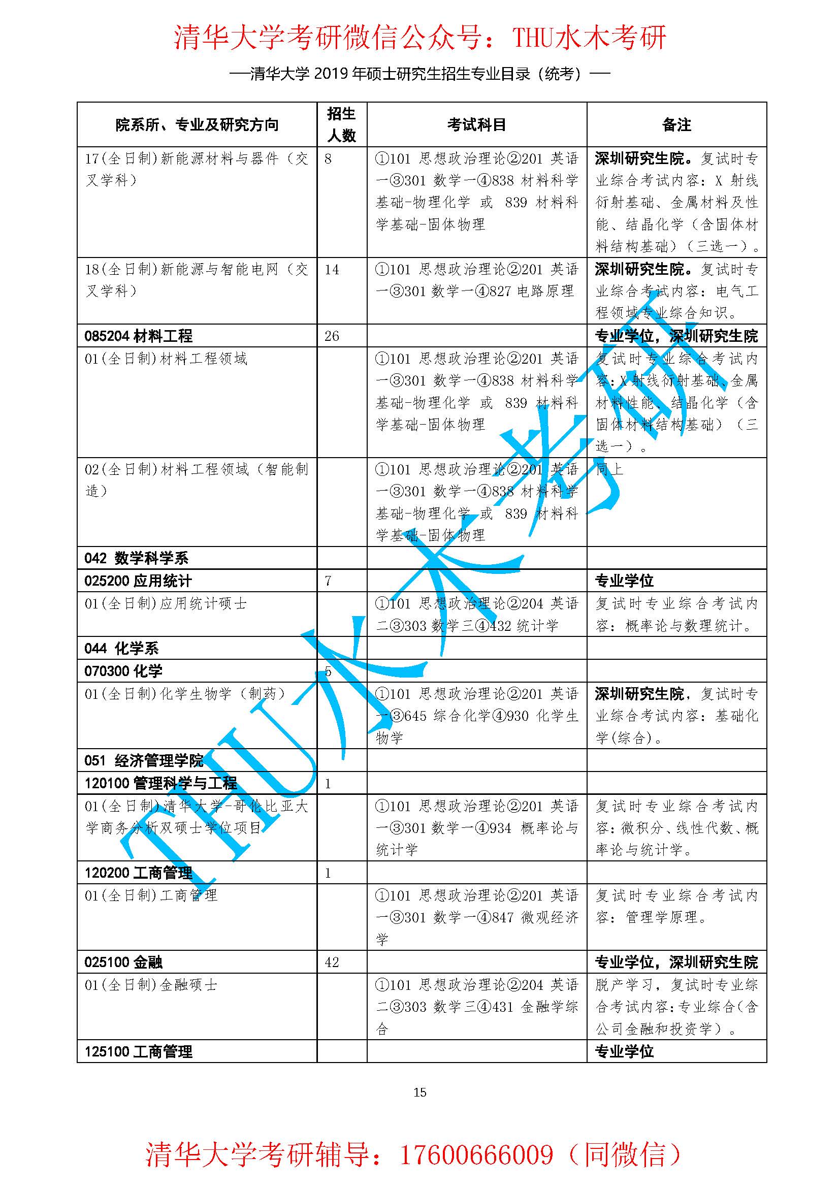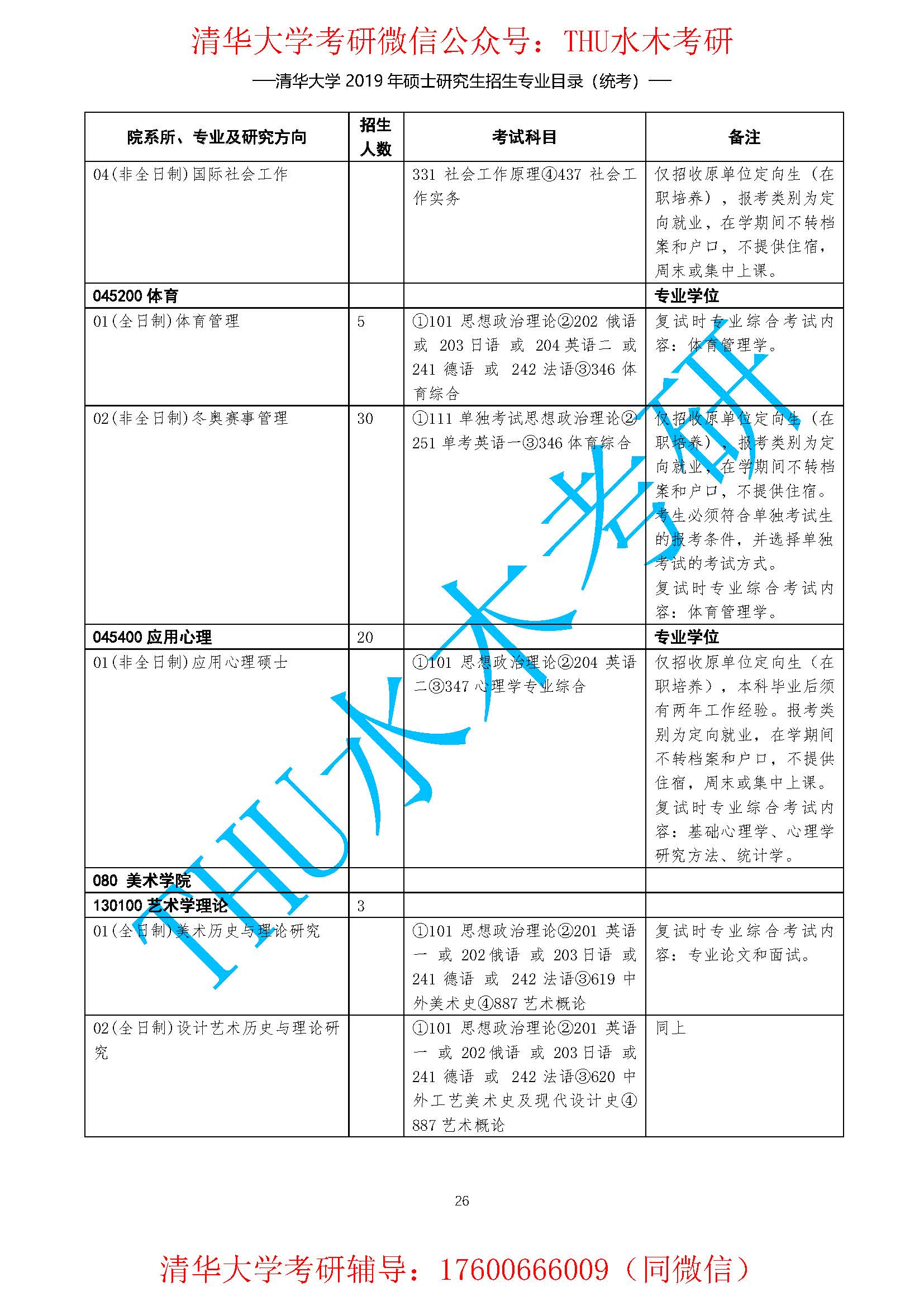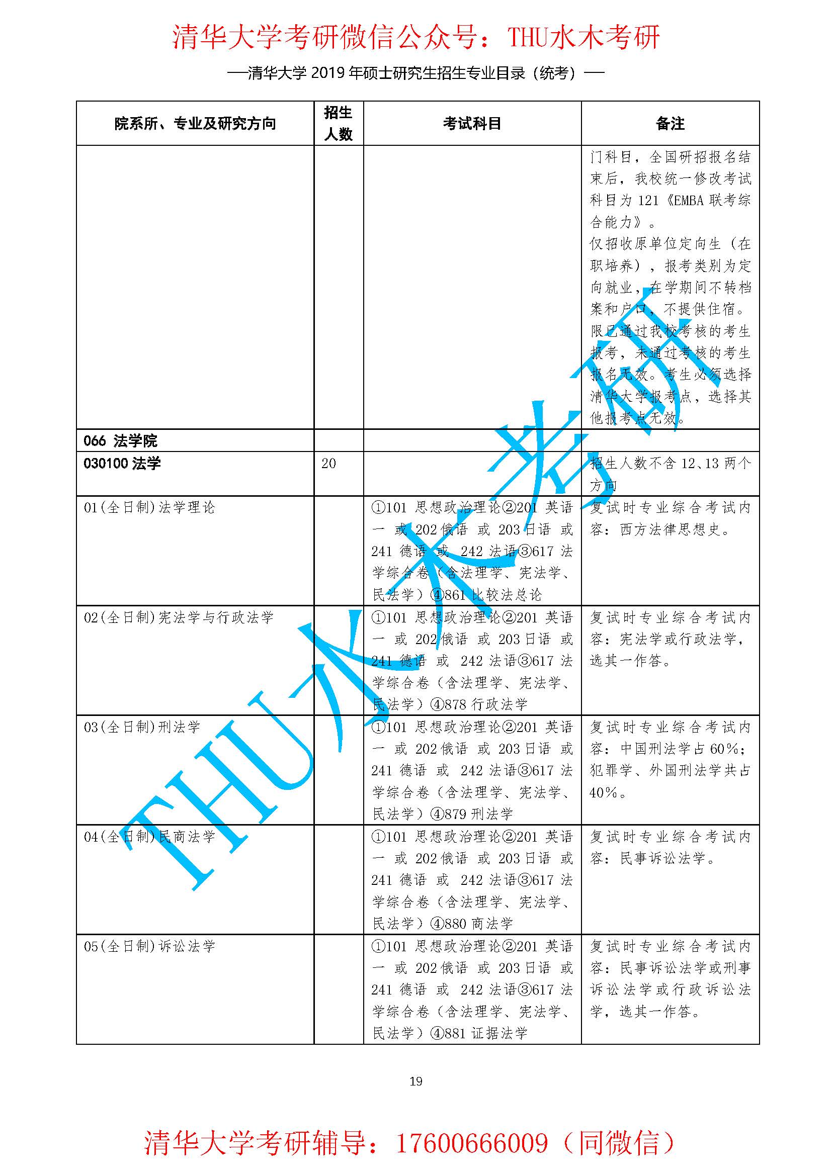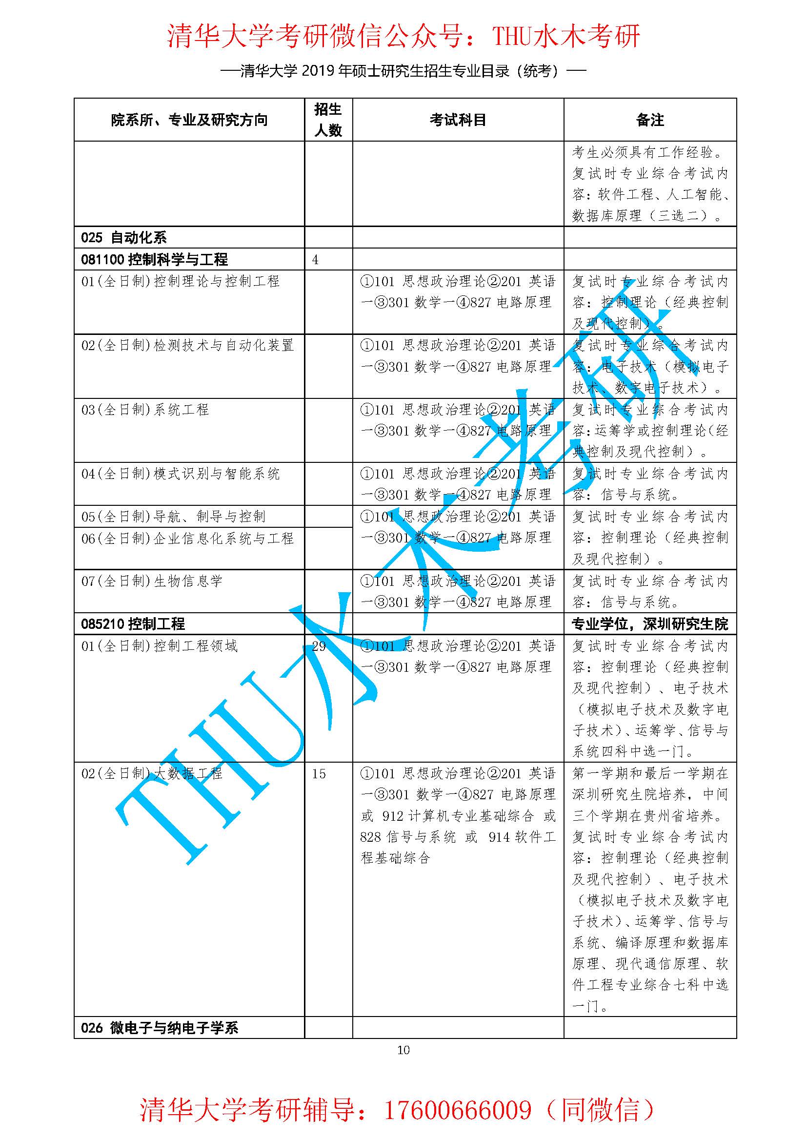 2019年清华大学硕士研究生招生专业目录、招生人数
