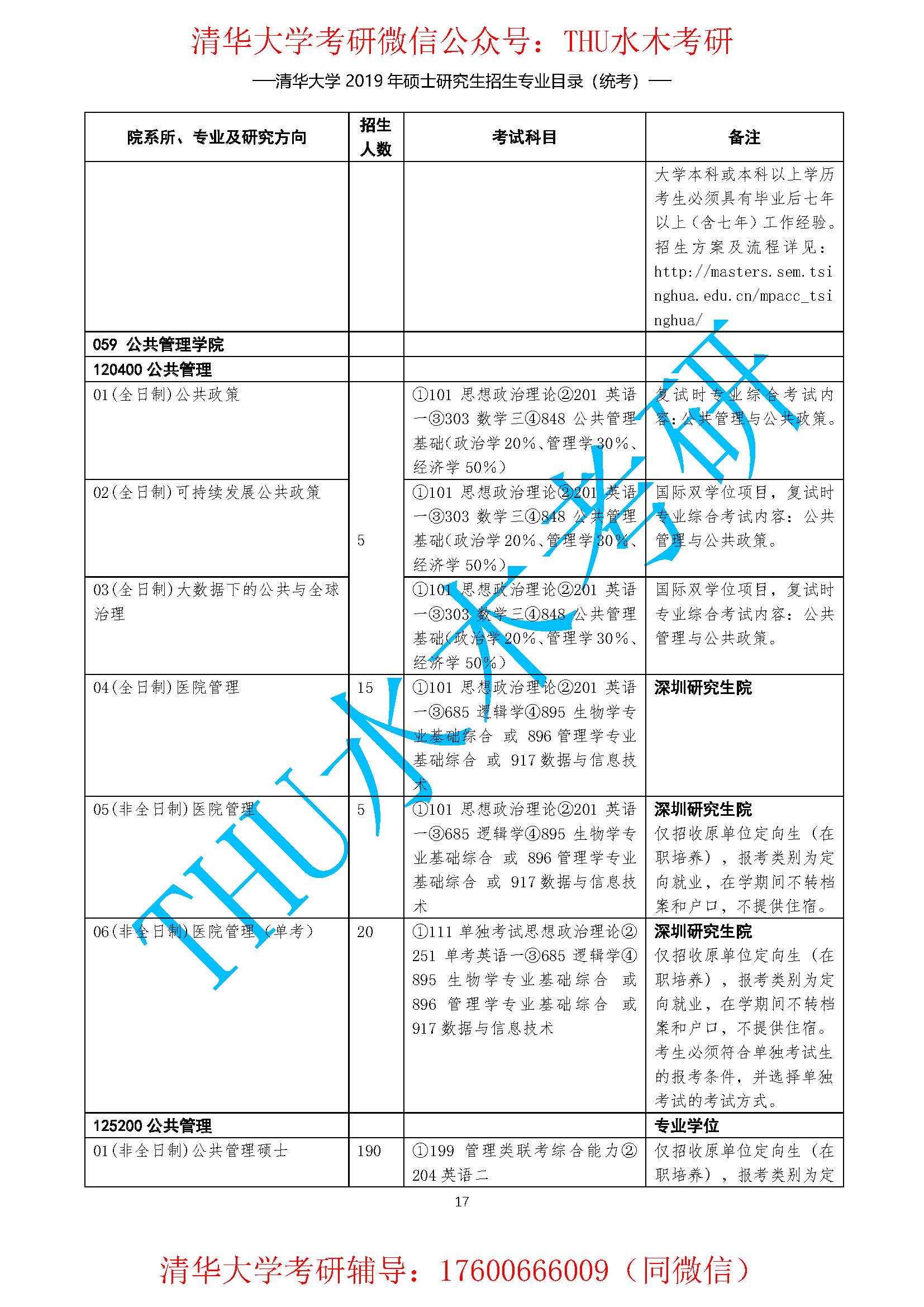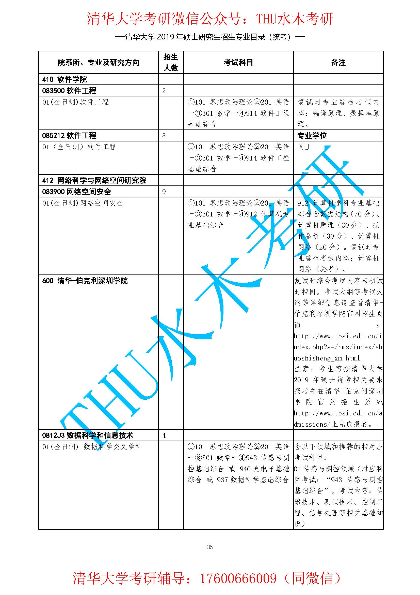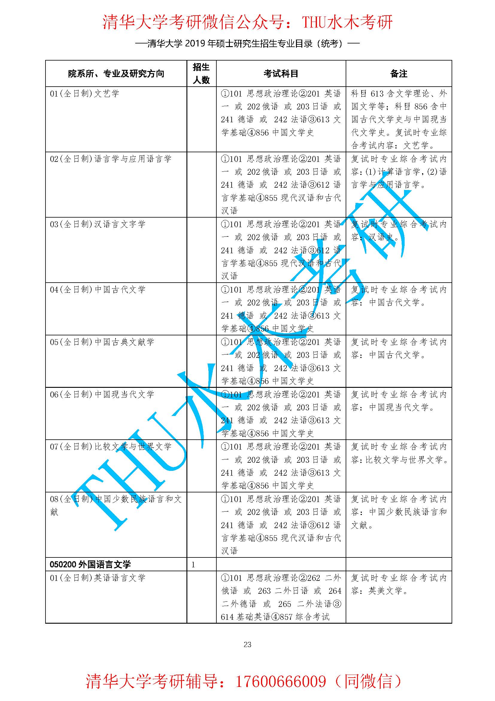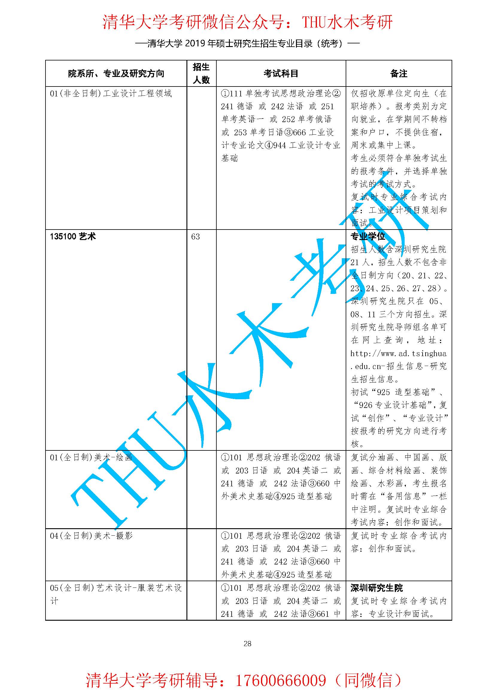 2019年清华大学硕士研究生招生专业目录、招生人数