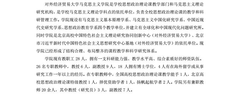 第一部分:关于对外经济贸易大学马克思主义学院简介及培养特色: