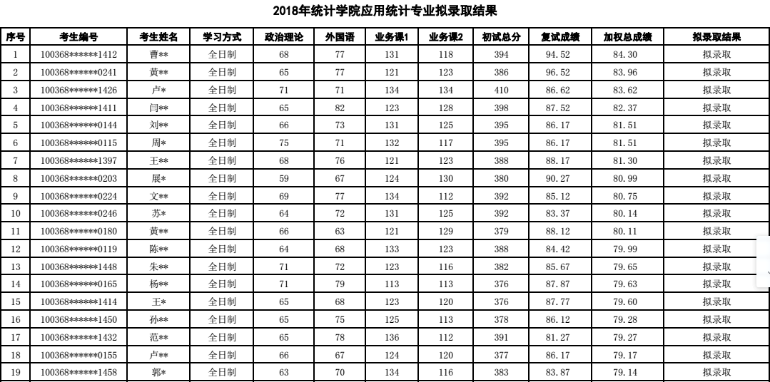 五、对外经济贸易大学统计学院应用统计(专业学位)研究生拟录取情况(2018年名单):