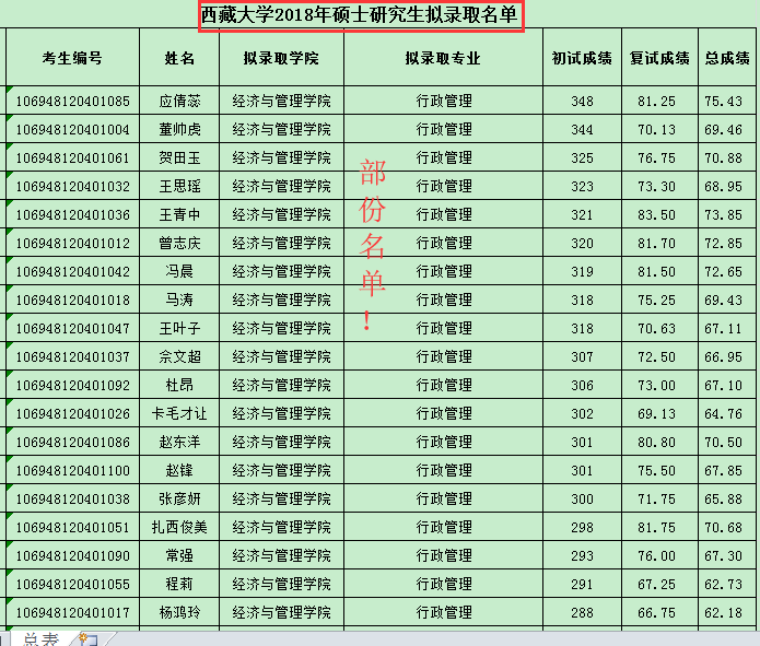 五、2018年西藏大学行政管理考研拟录取名单