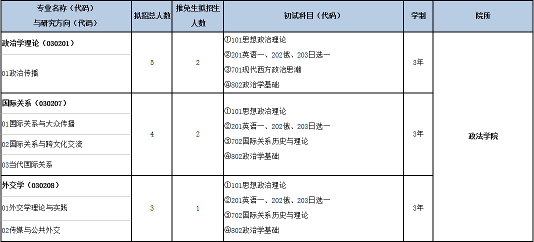 2019中国传媒大学国际关系、政治学理论、外交学招生专业、招生人数、考试科目