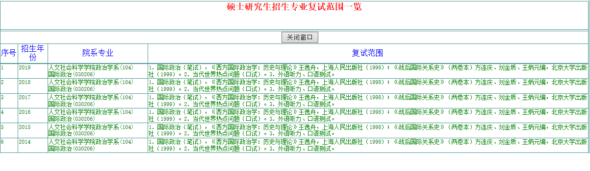 学位专业课(必修):国际政治理论、国际关系史、专业外语