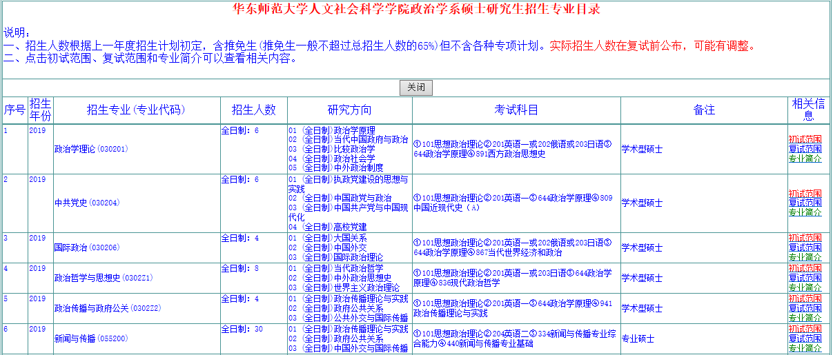 华东师范大学政治学系中共党史专业是从1983年开始招生硕士研究生的,是国内第一批硕士点之一。本专业从2013年开始招生中共党史专业的博士研究生。本专业经过30多年来一大批党史专家的坚持不懈的努力,已经建立起了学科比较完整,课程结构合理,适于培养从事党政机关、高校和企事业所需要的全方位人才的实力强劲的学科。本专业在研究生的培养方面,实行导师负责与集体培养相结合的方式,注重从人的素质、科研水平、学术素养等全方位培养学生。从1983年到2017年,我们共培养了近300名硕士研究生,目前在读的有22名。我们曾有多名研究生在读书期间在《中共党史研究》等刊物上发表多篇论文,在同行中产生了广泛的影响,也引起了同行专家的重视。我们也有多名研究生在三年读书期间发表了20多篇论文。