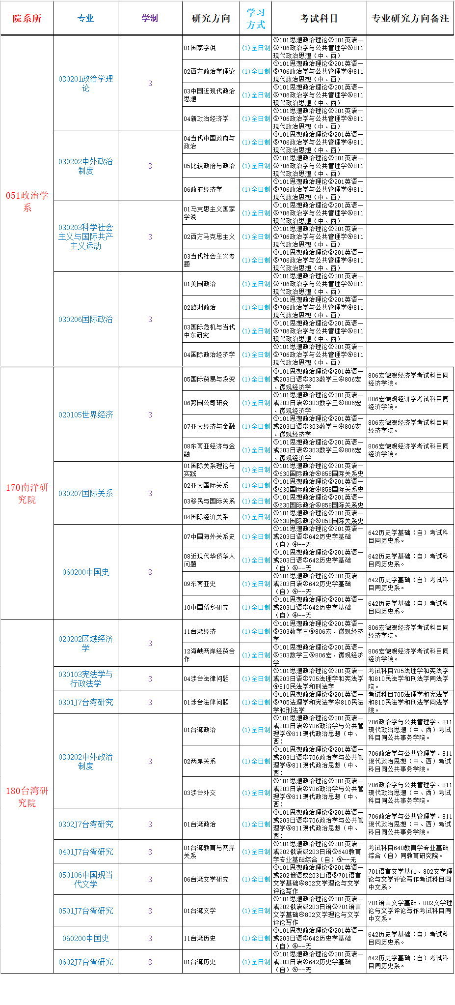 2019厦门大学政治学理论国际关系考研招生专业人数、考试科目