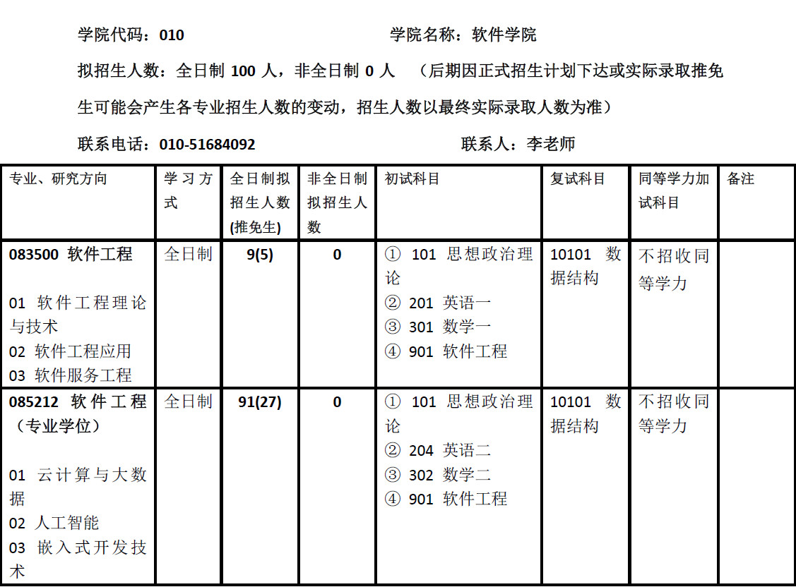 本文将系统的对北京交通大学软件工程考研进行解析,主要有以下几个板块:学院介绍、专业介绍、近三年复试线、招生人数、考研科目介绍、考研参考书目及备考经验等几大方面。新祥旭考研丁老师(xinxiangxu123)将详细的为大家解答: