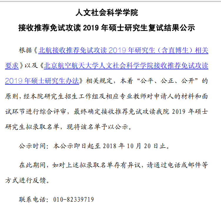 2019年北航行管推免公示名单