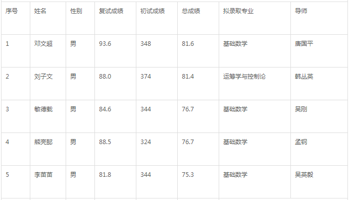 四、中国科学院大学应用统计专业考研录取名单