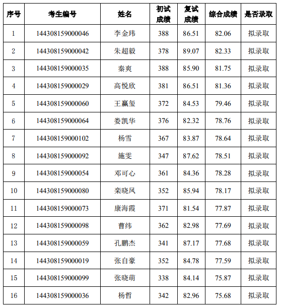 总成绩=初试成绩/5×50%+复试成绩×50%