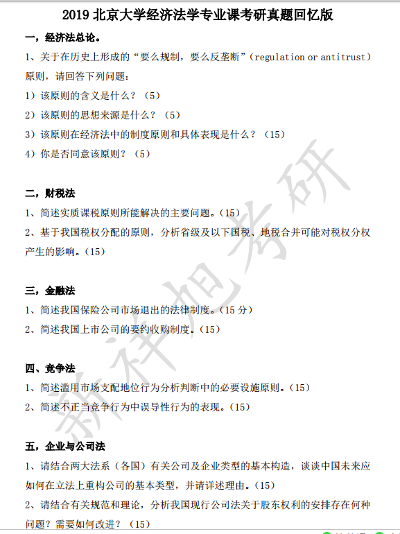 最新| 2019北京大学经济法学专业课考研真题回忆版