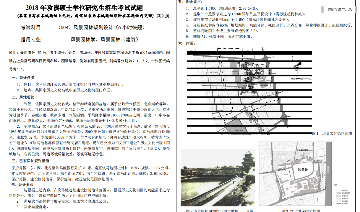 2018年西安建筑科技大学风景园林考研845 3小时专业设计Ⅰ考试真题