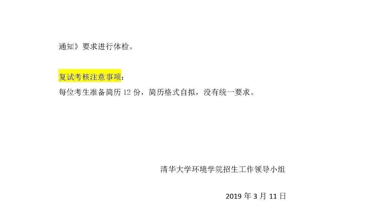 2019年清华大学环境学院复试分数线