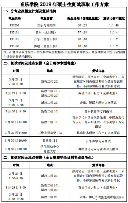 2019年首师大音乐学院硕士研究生复试录取工作方案
