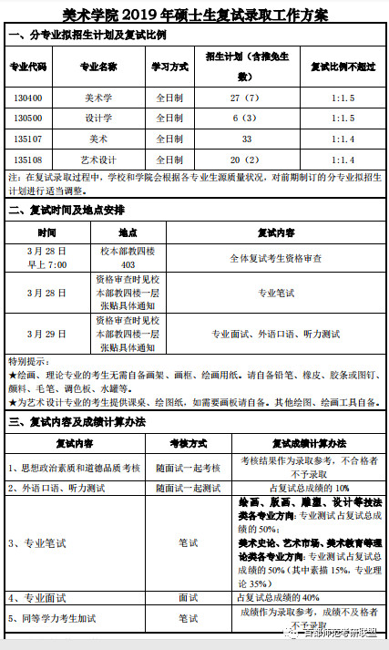 2019年首师大美术学院硕士研究生复试录取工作方案