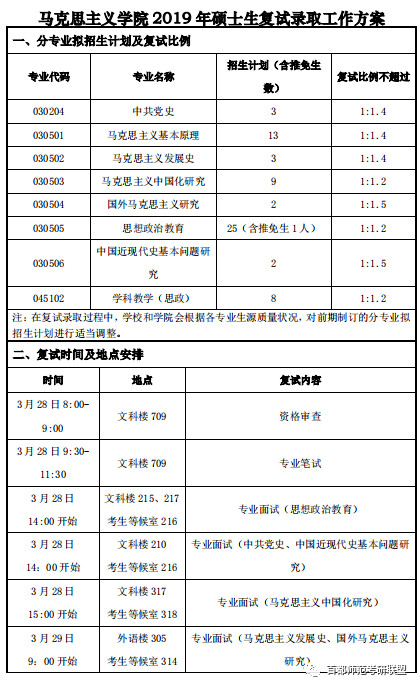 2019年首师大马克思主义学院硕士研究生复试录取方案