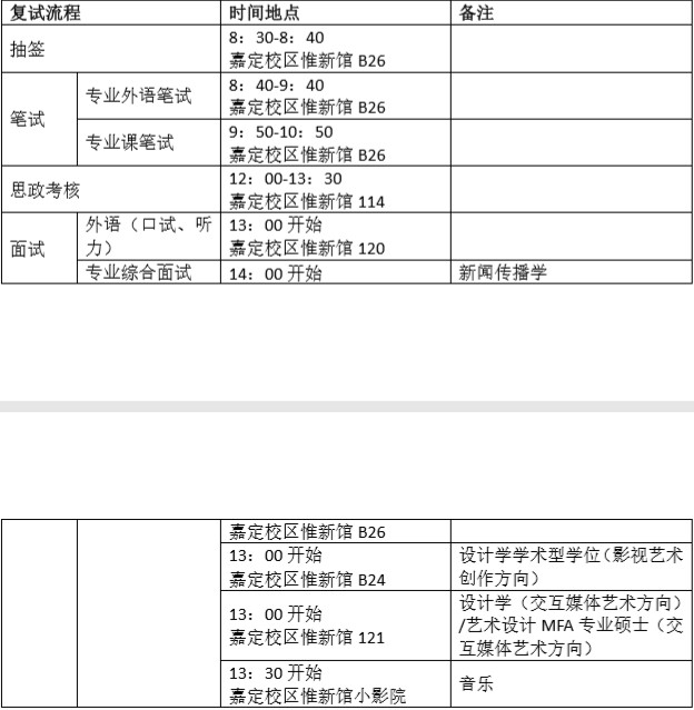 复试时间:2019 年 3 月 19 日、复试地点:同济大学嘉定校区。