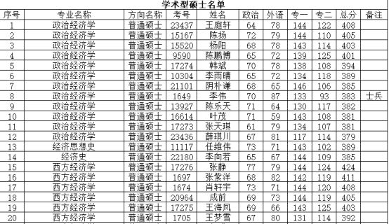 1、学术型硕士各专业复试分数线:政治55分、外语55分、专业一90分、专业二90分、总分377分。